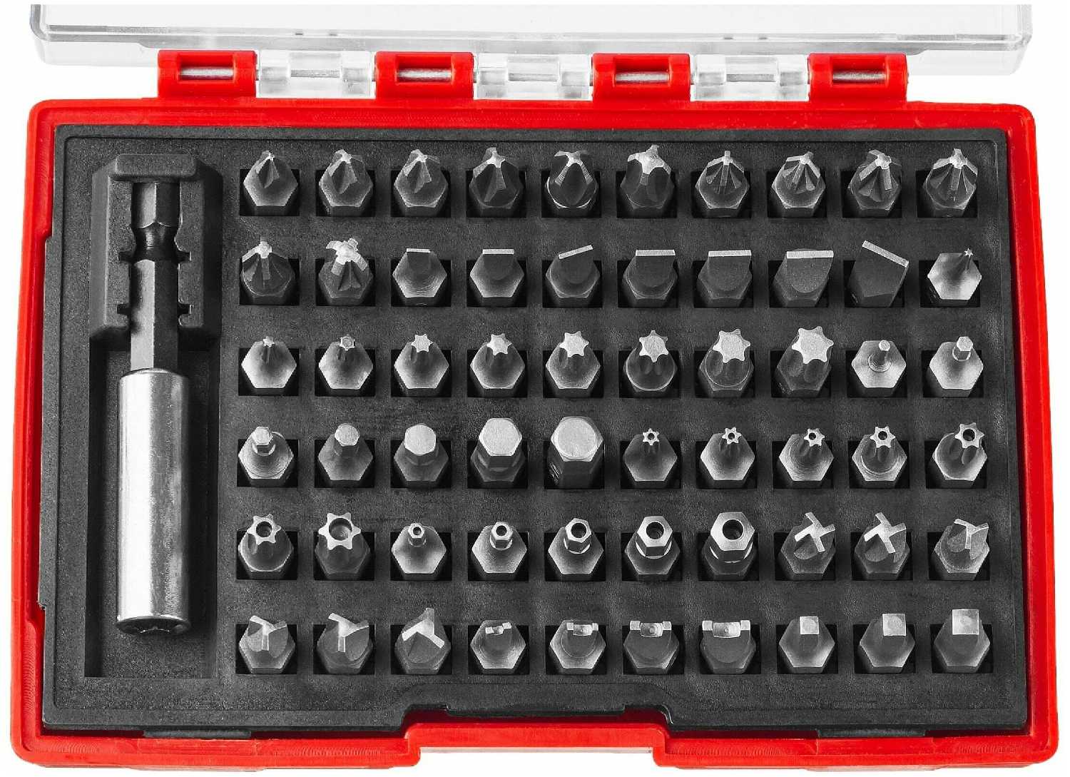 Около 80% бытовых нужд покрывают 5-7 типов бит, преимущественно крестовых (PH1, PH2) и шлицевых. Остальные насадки, включая экзотические звёздочки или шестигранники, применяются редко, но их наличие полезно для нестандартных крепежей. Комплектация избыточна для базовых задач, но удобна как универсальный набор "на все случаи". -