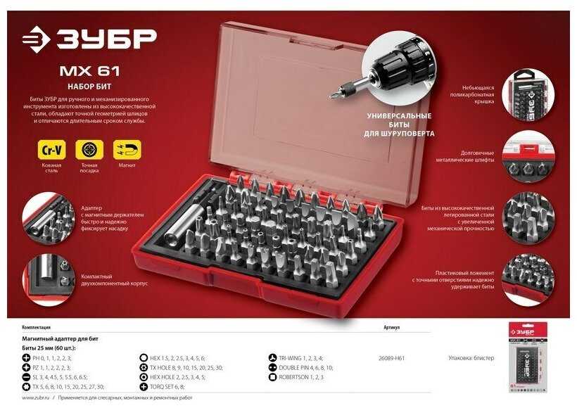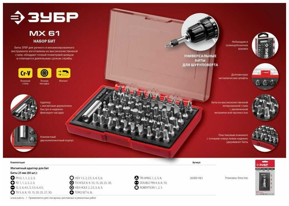 Обзор ЗУБР Набор оснастки для инструментов (26089-H61) - мнение пользователей*: