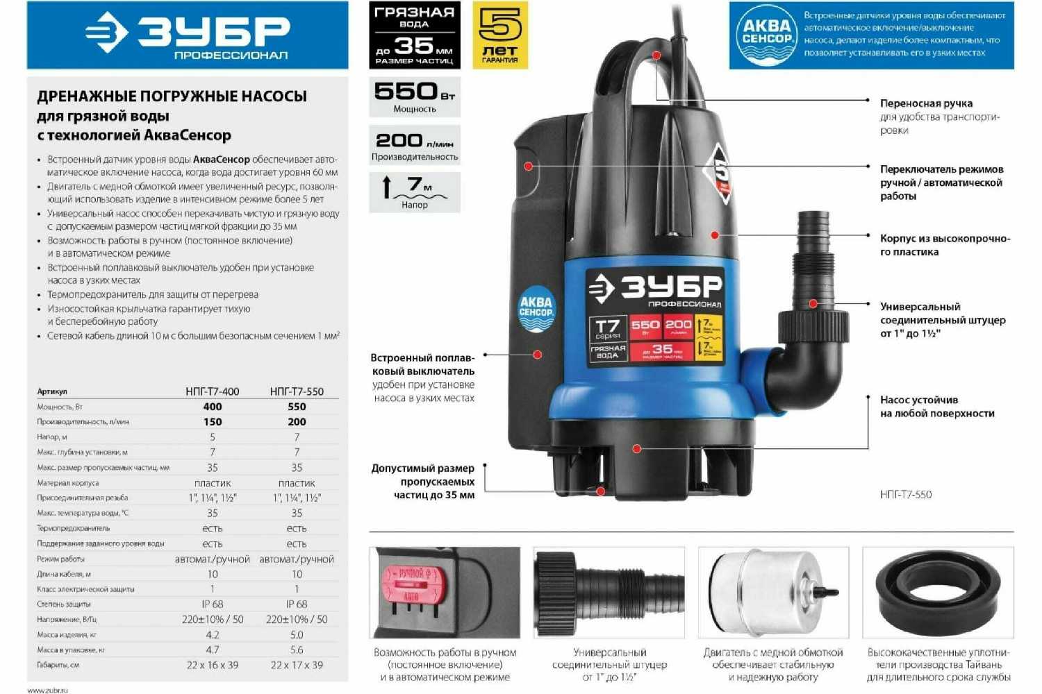 Сравнение с конкурентами: Для частого использования в сложных условиях (например, грязные колодцы глубиной 5+ метров) предпочтительны GMI или Elitech. При ограниченном бюджете и нерегулярных задачах ЗУБР конкурирует с китайскими аналогами, но выигрывает за счёт доступности гарантийного обслуживания.