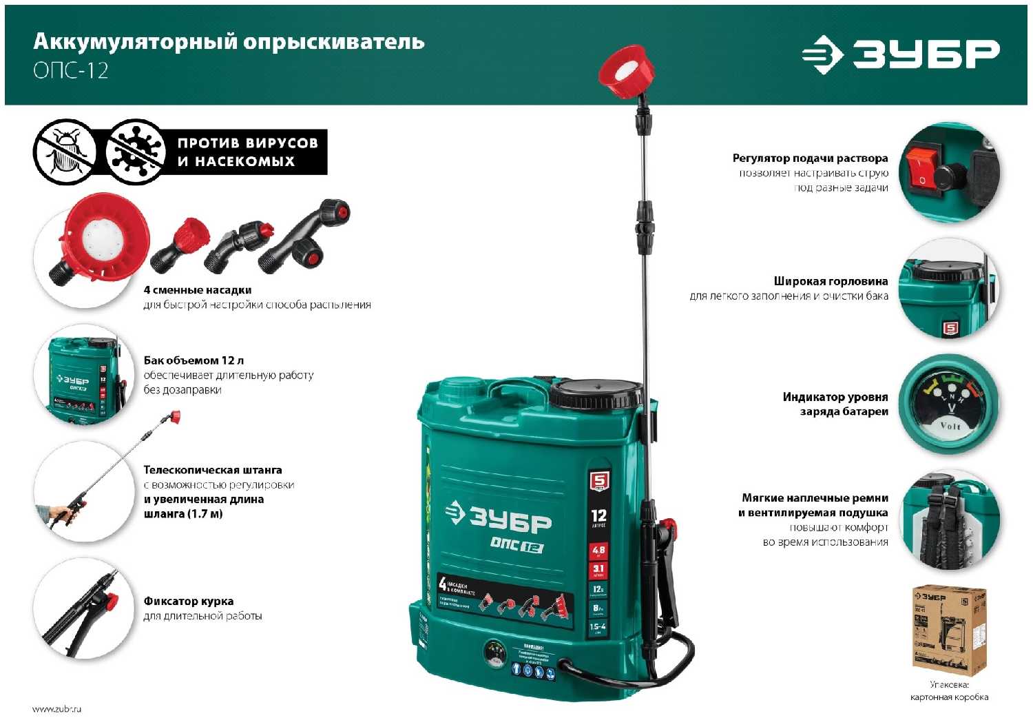 Обзор ЗУБР Опрыскиватель аккумуляторный ОПС-12 - мнение пользователей*: