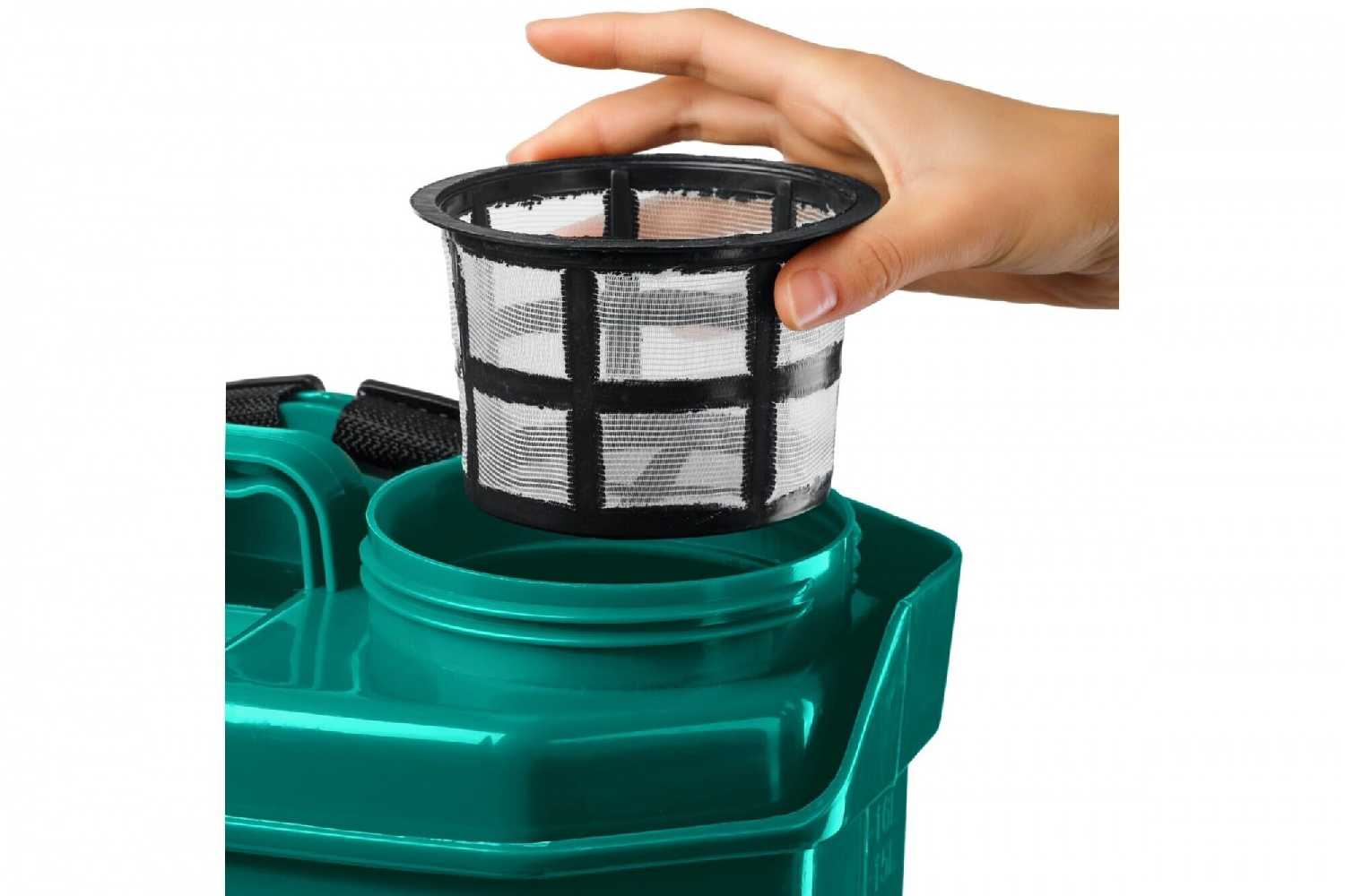 - Сетчатый фильтр предотвращает засорение форсунок частицами удобрений.