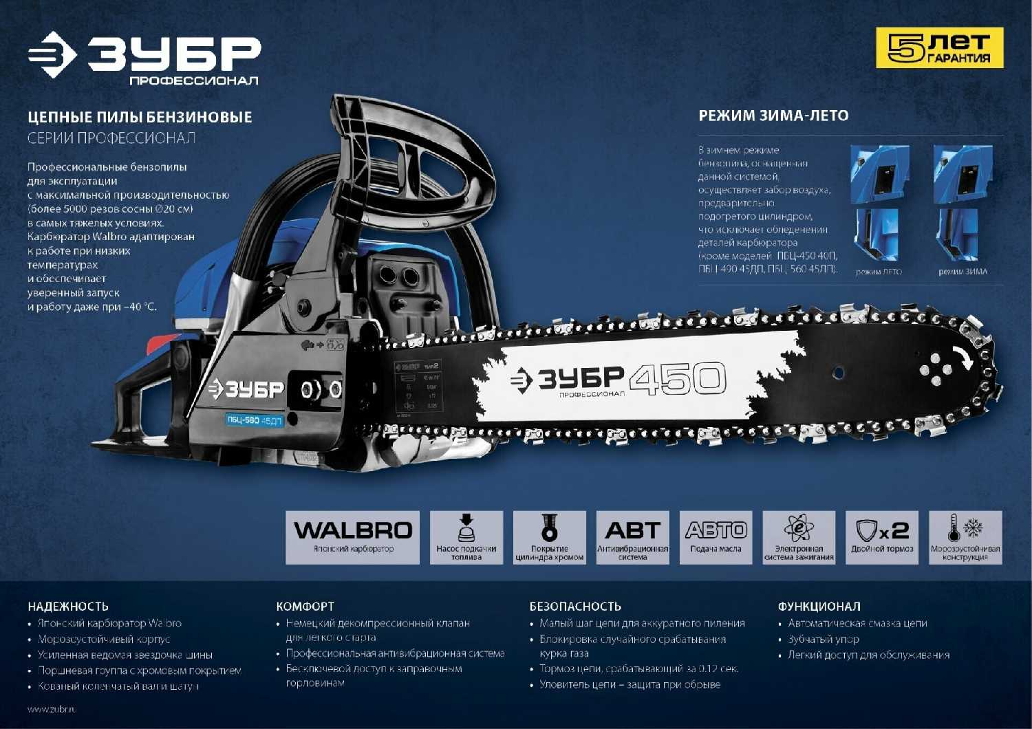 Быстро заводится, удобная в работе, качество сборки, гарантия 5 лет, вес, цена.