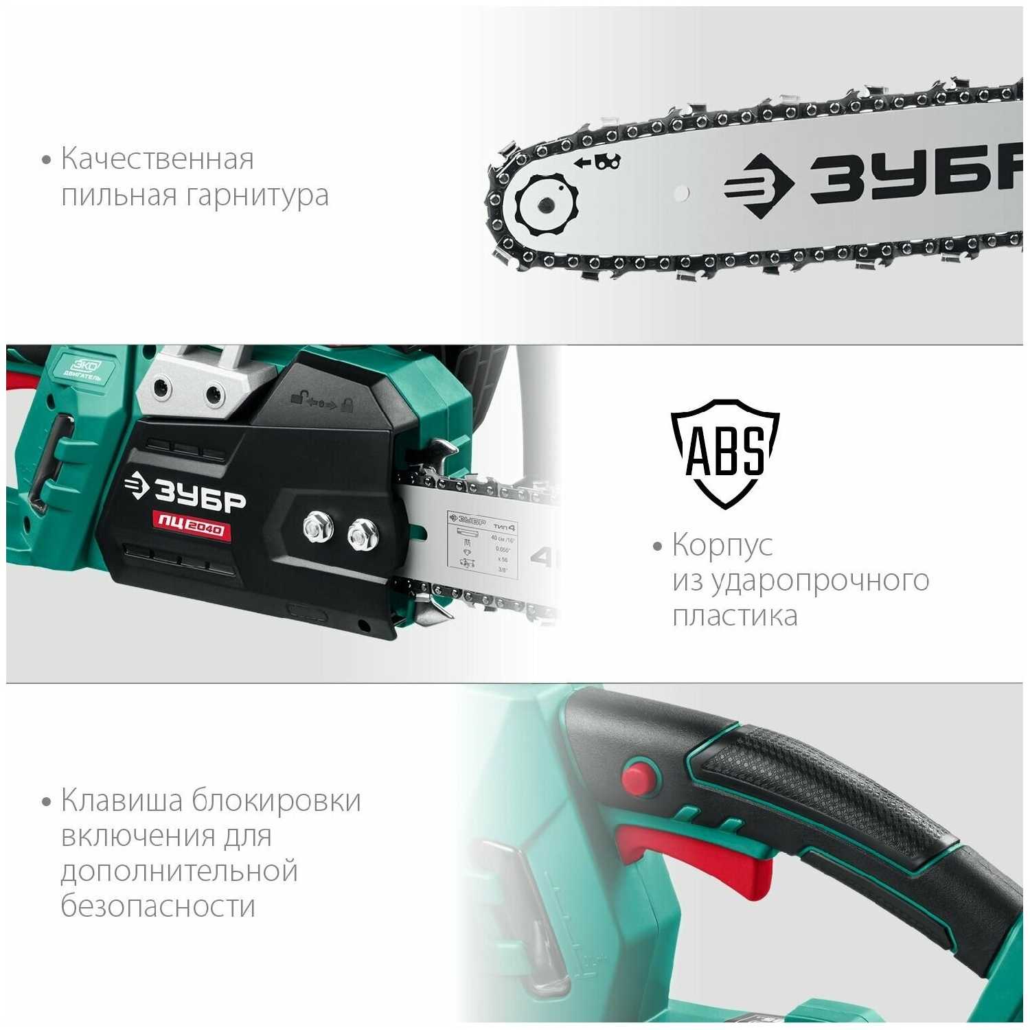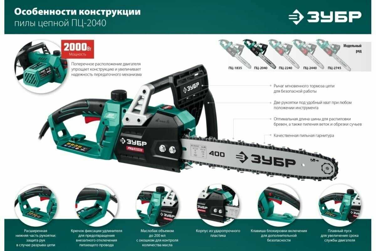 Заказал пилу Зубр 2400 вт с шиной 400. Пришла вещь хорошо упакованная в оригинальной коробке. Собрал сразу. Все проблемные поддоны. распилилина на раз.