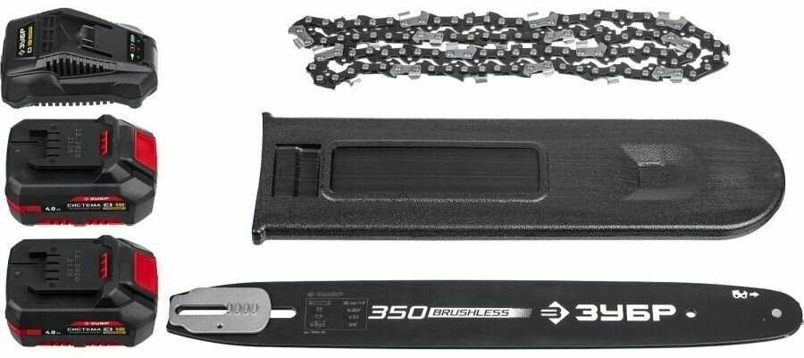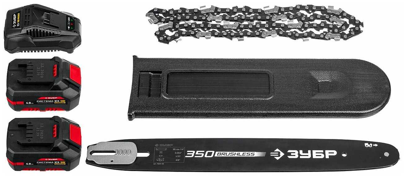 | Комплект поставки : | зарядное устройство, 2 аккумулятора, цепь пильная, шина, кожух шины |