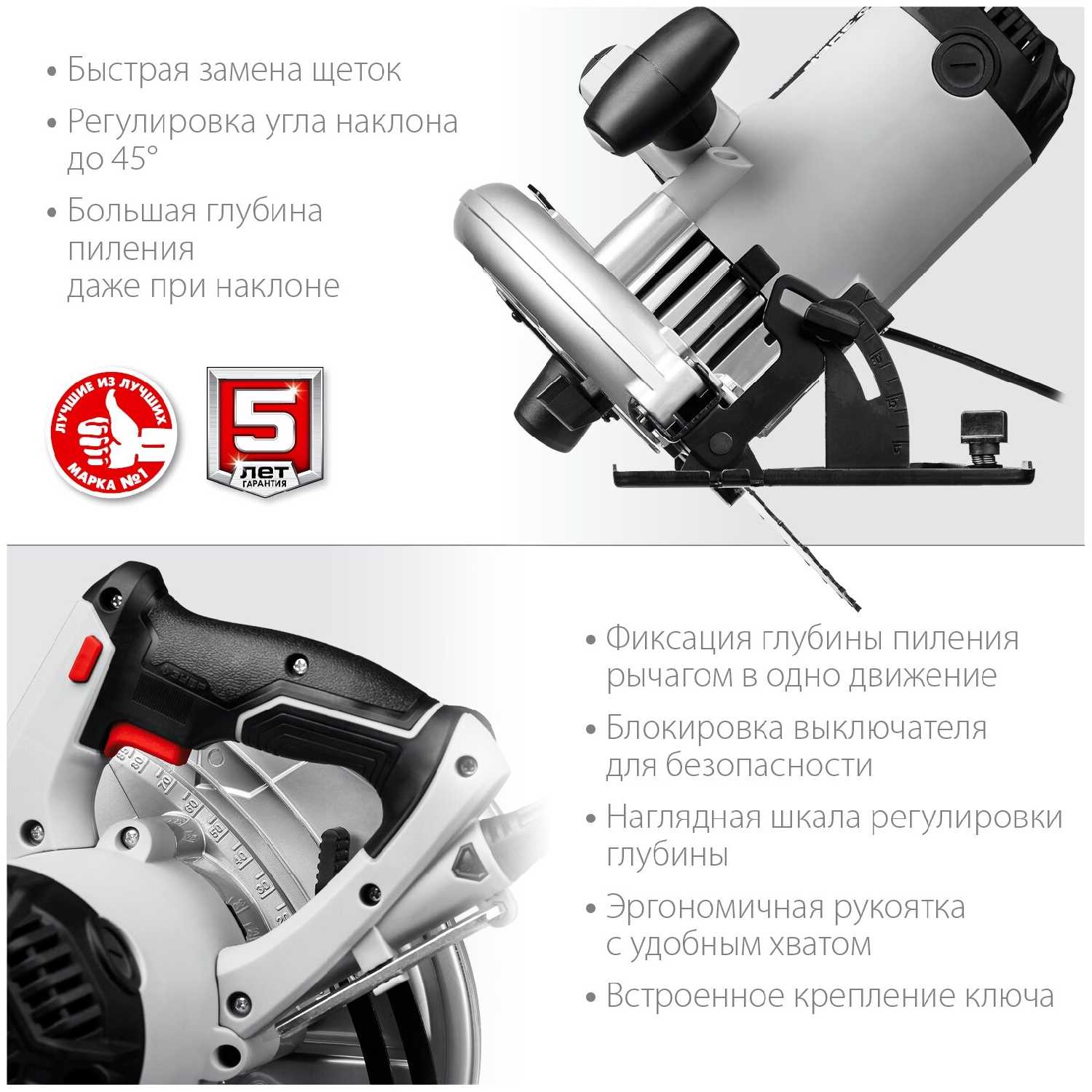 - Подходит для профессионального использования, таких как монтаж дверей или распил фанеры без сколов.