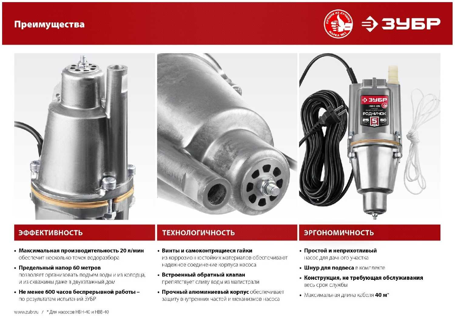 Отзывы о Вибрационный насос с нижним забором воды ЗУБР Родничок-Н, 25 м провод, НВН-25