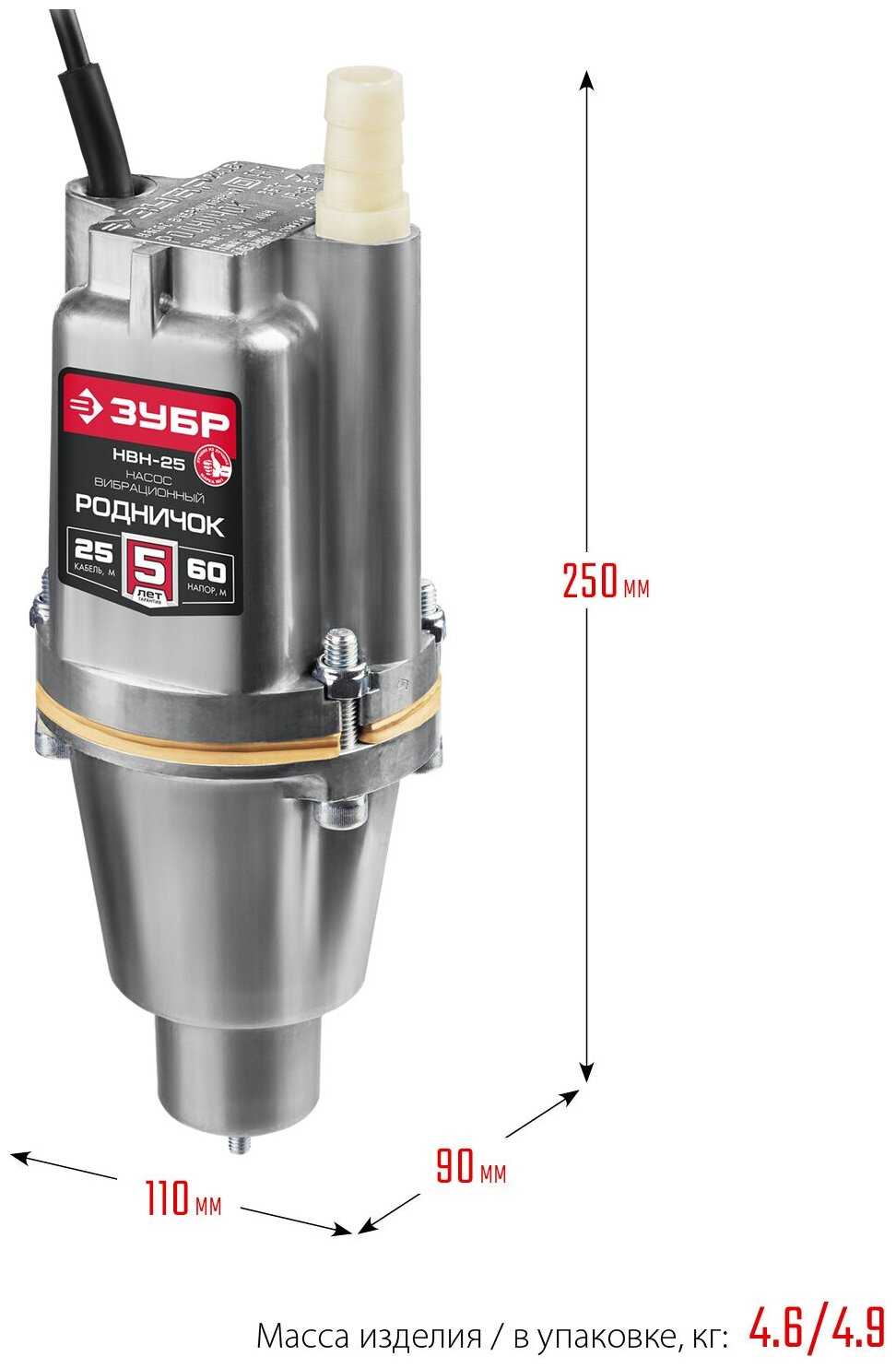Отзывы о Вибрационный насос с нижним забором воды ЗУБР Родничок-Н, 25 м провод, НВН-25