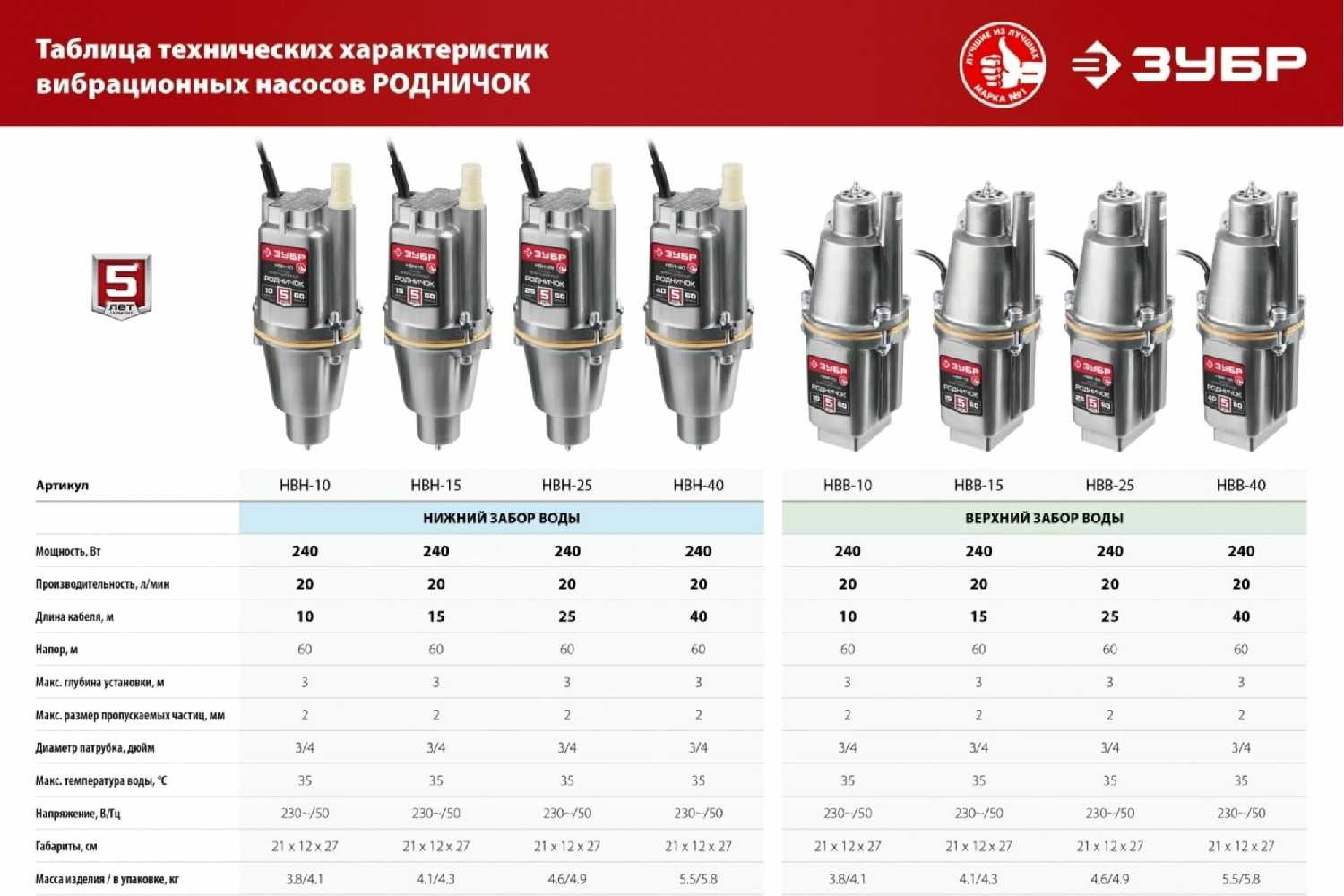 Характеристи ЗУБР Родничок-В (НВВ-10)