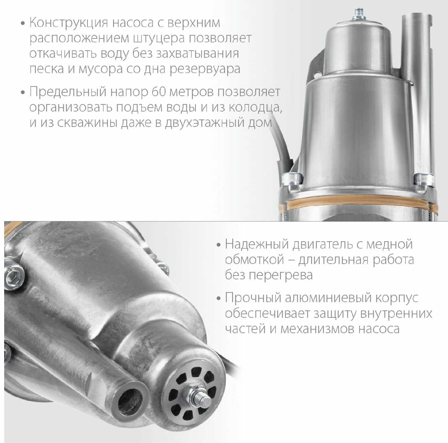 Подробная комплектация : | насос вибрационный, шнур капроновый 2 м, инструкция по безопасности, руководство по эксплуатации, упаковка |