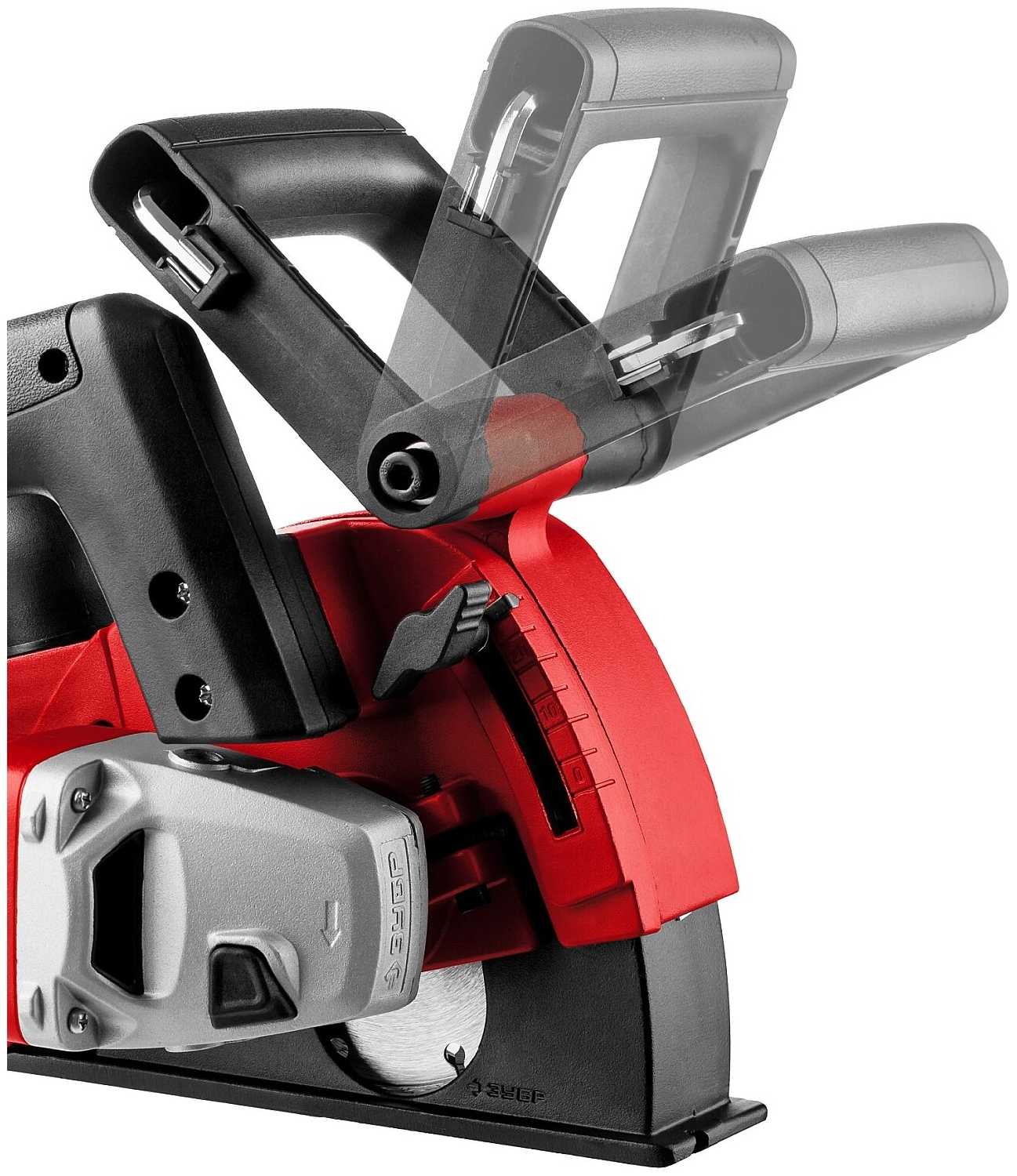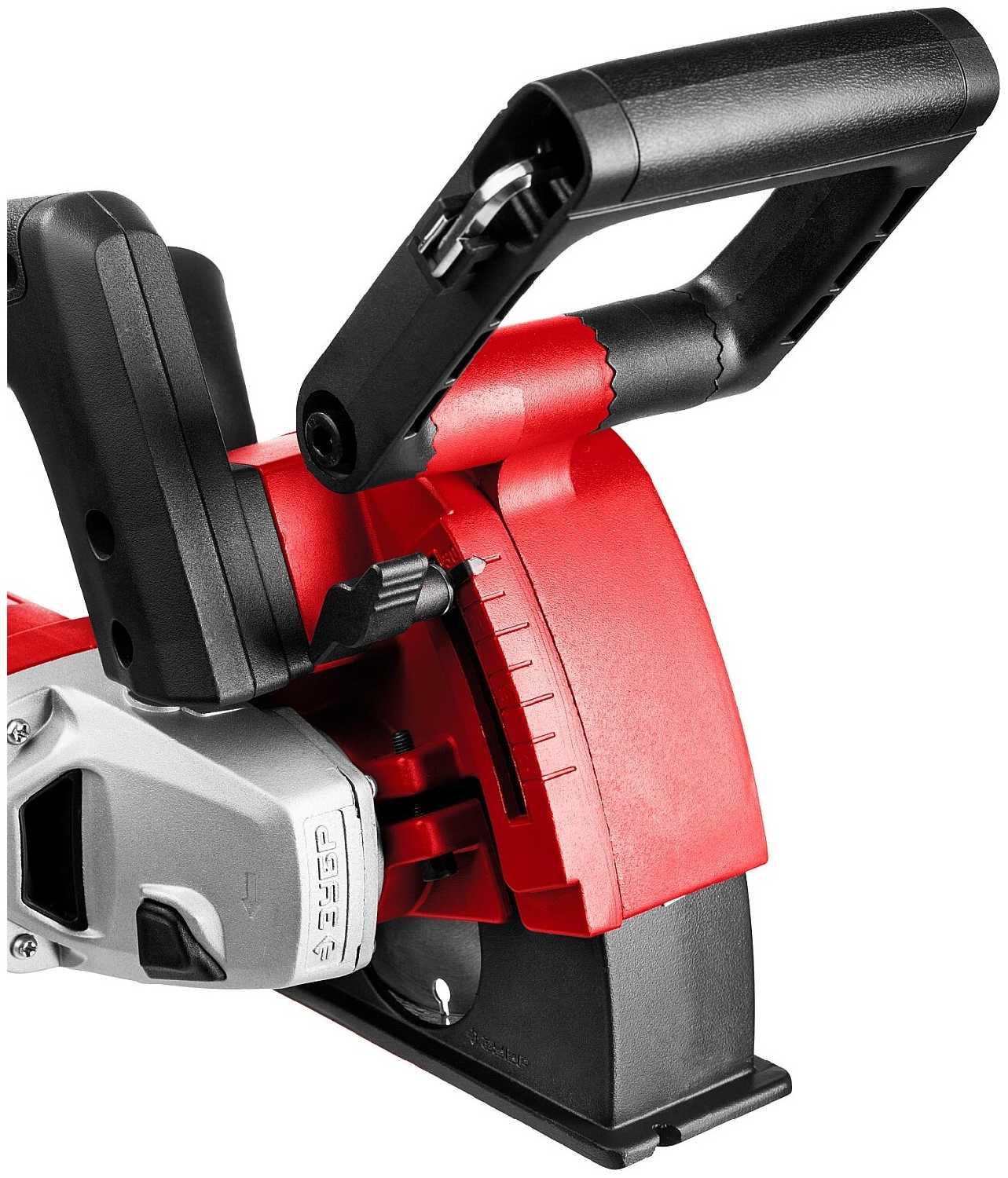 - Верхняя рукоятка обеспечивает контроль инструмента при вертикальном штроблении, минимизируя отклонения.