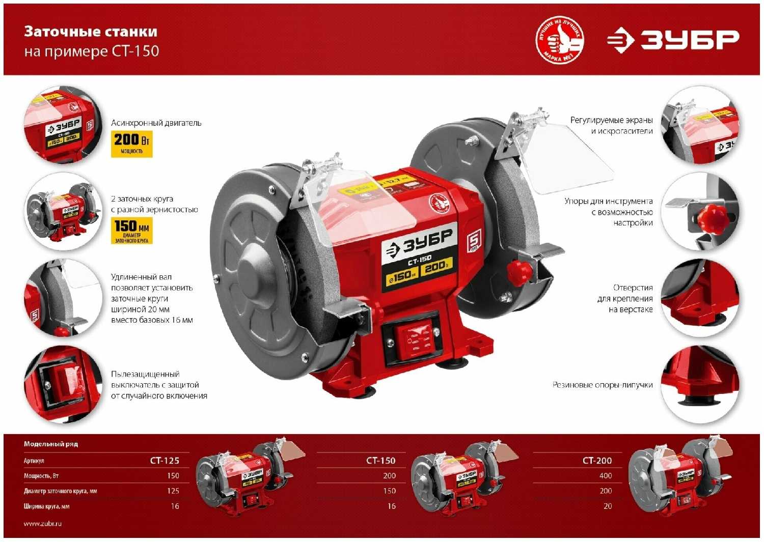 | Подробная комплектация : | Станок заточной 1 шт Абразивный заточной круг (установлен) 2 шт Защитный экран 2 комплекта Упор 2 комплекта Переходные втулки 2 шт Руководство по эксплуатации 1 шт Упаковка |