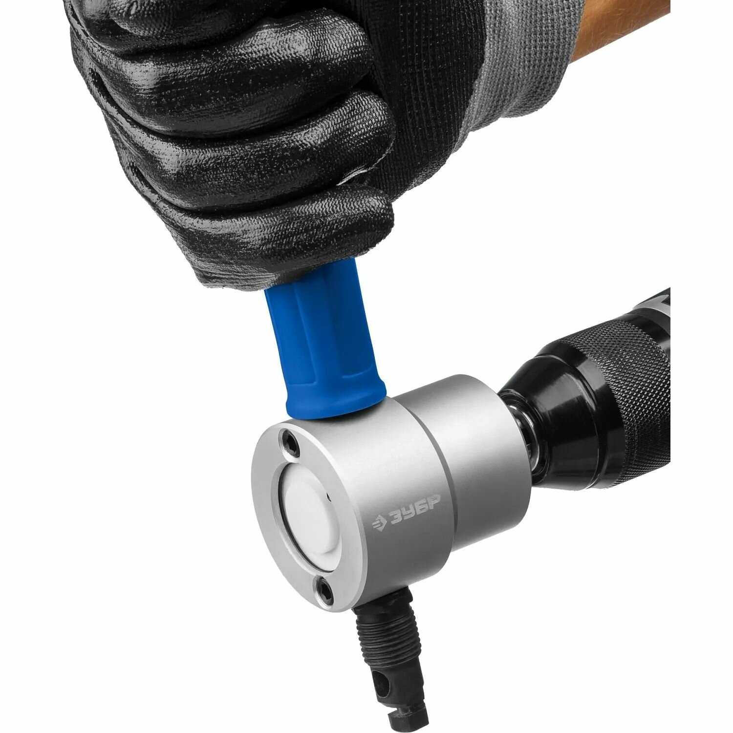 - - Нужна третья рука, при работе держишь "шурика" и ручку насадки (свободно вращается по кругу)