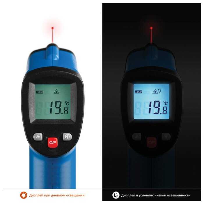 | Функции и особенности : | автоматическое отключение, звуковая индикация, измерение высоких температур, лазерный прицел, функция фиксации значений |