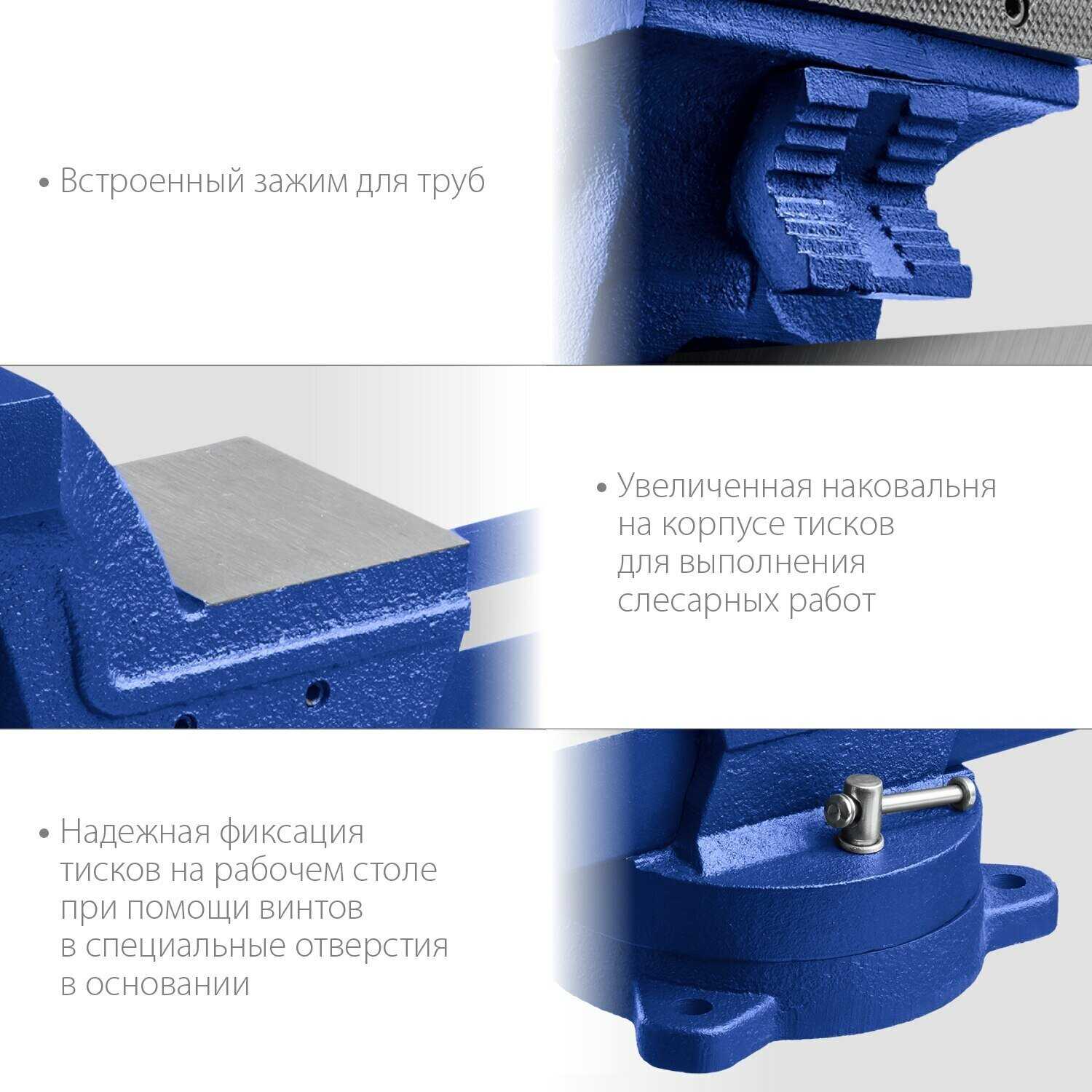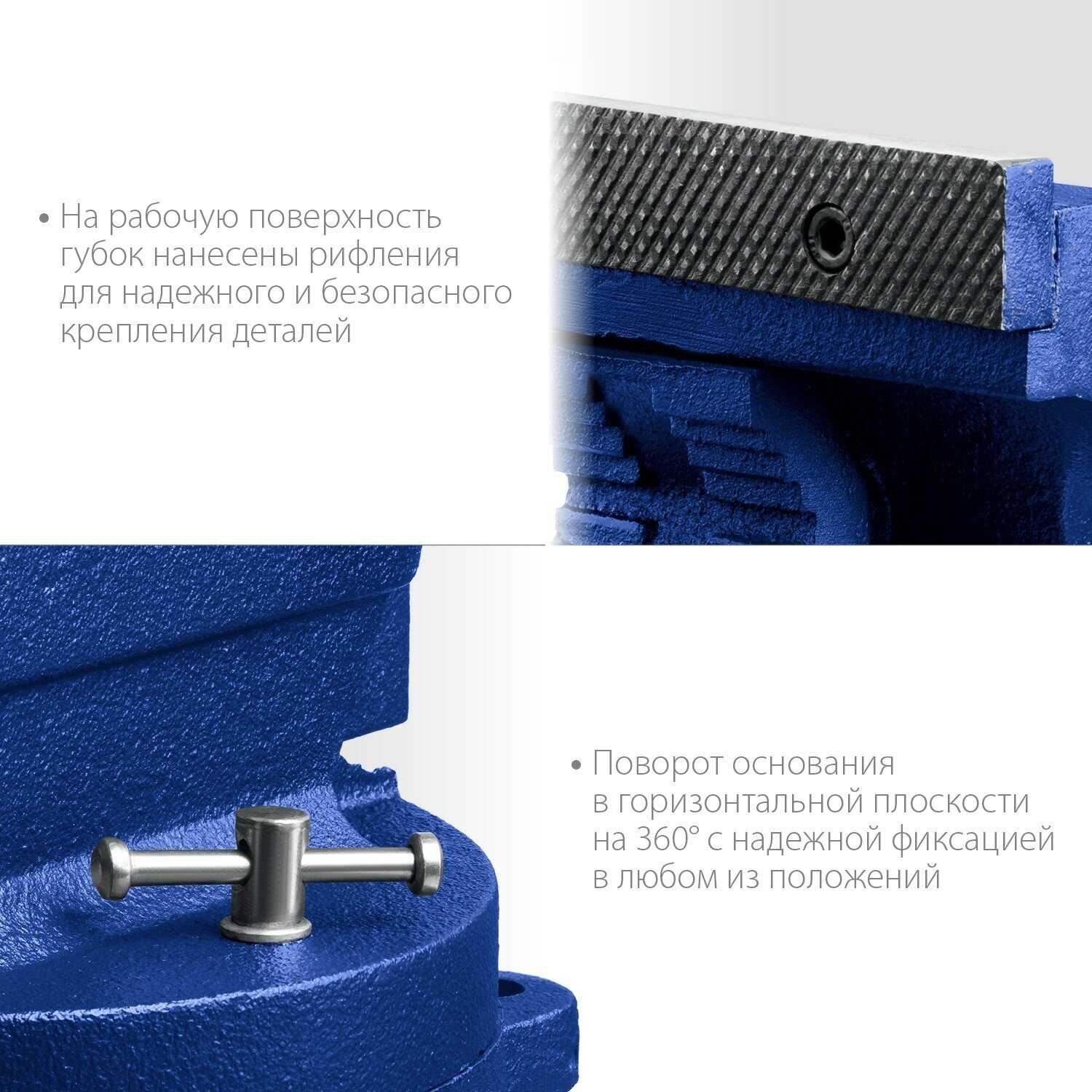 Установил на даче на верстак. Пользуюсь уже два сезона. Хорошее качество отливки. Удобный поворотный механизм! Качественные губки со средней насечкой, хорошо зажимают. Сам зажимной винт вращается легко, без особых усилий. Тиски хорошие, рекомендую к приобретению! Пользуюсь более 2х лет, нареканий нет!