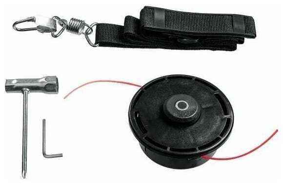 - - маленький щиток защиты, одевайте высокую обувь и штаны, обязательно очки. штатная катушка не сбрасывет леску.