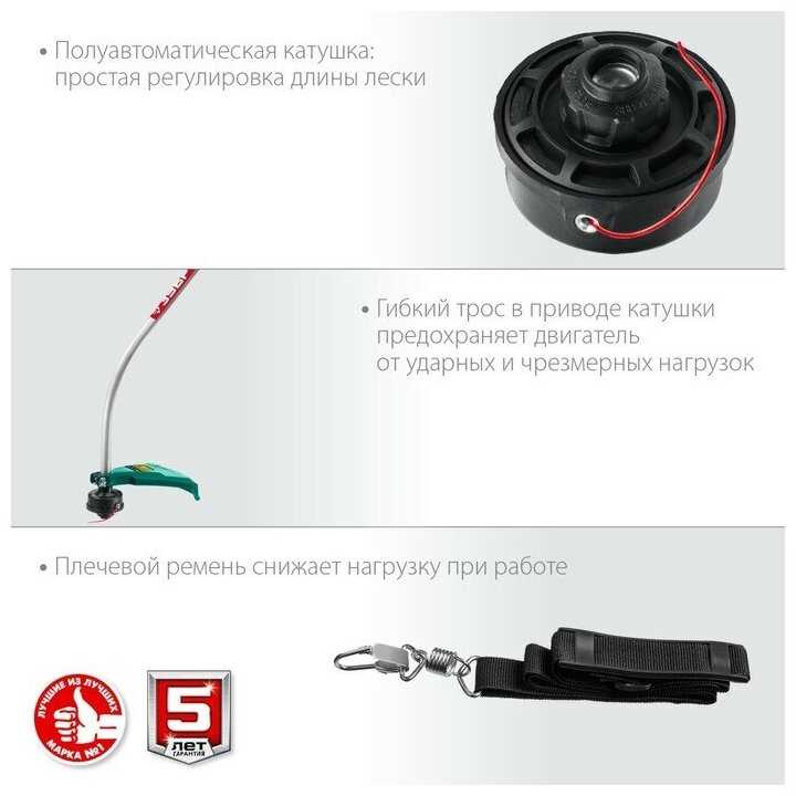 Зубр вообще качественная техника у меня много этова бренда техники да и лёгкий этот триммер косит всё подряд супруга в восторге цена на тот момент в ситилинке была 6200р самая маленькая да и брал я в этом магазине много чего пока не что не ломалось а триммер супер собирается легко