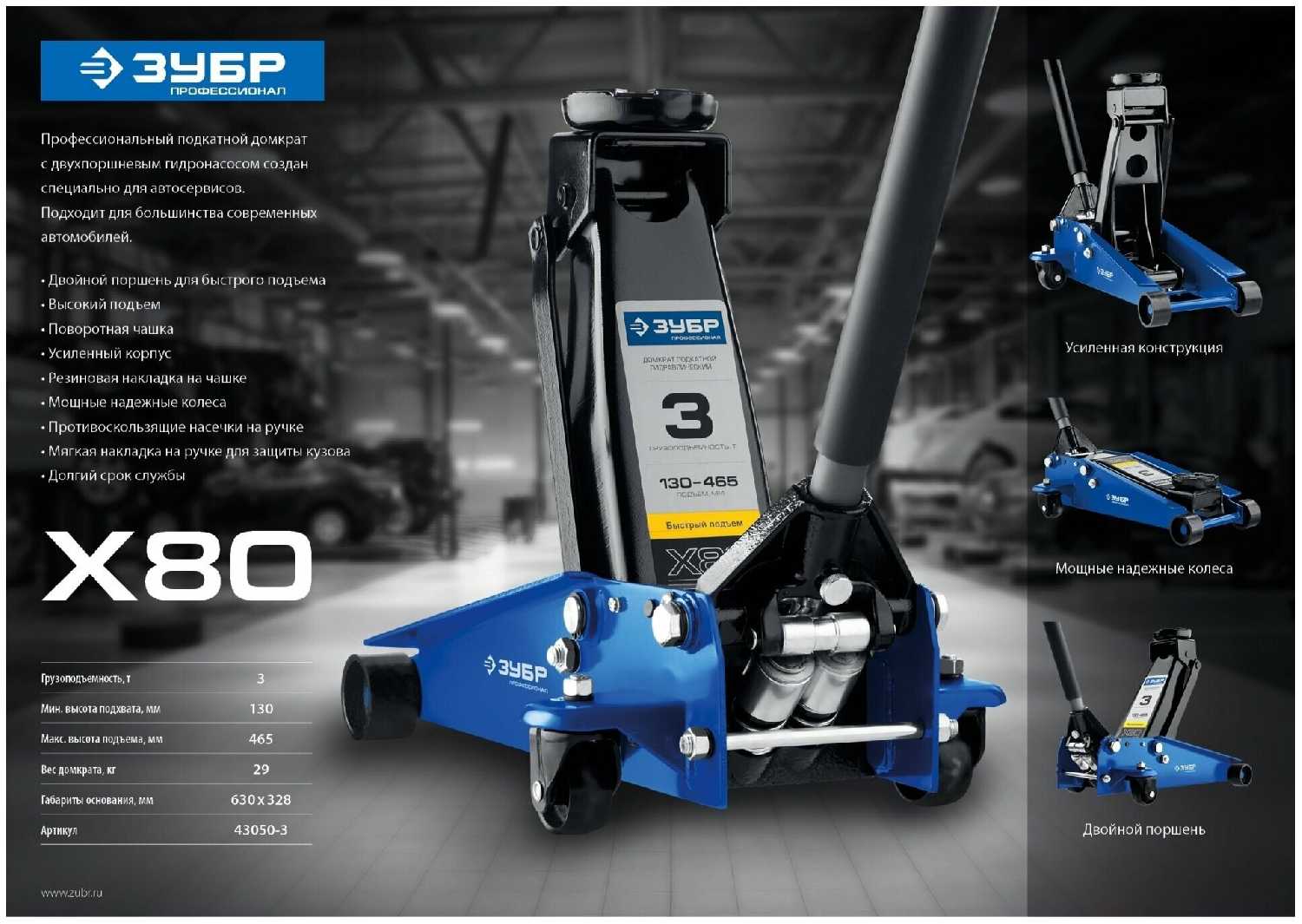 Отзывы о Домкрат подкатной гидравлический ЗУБР X80 [43050-3_z01]