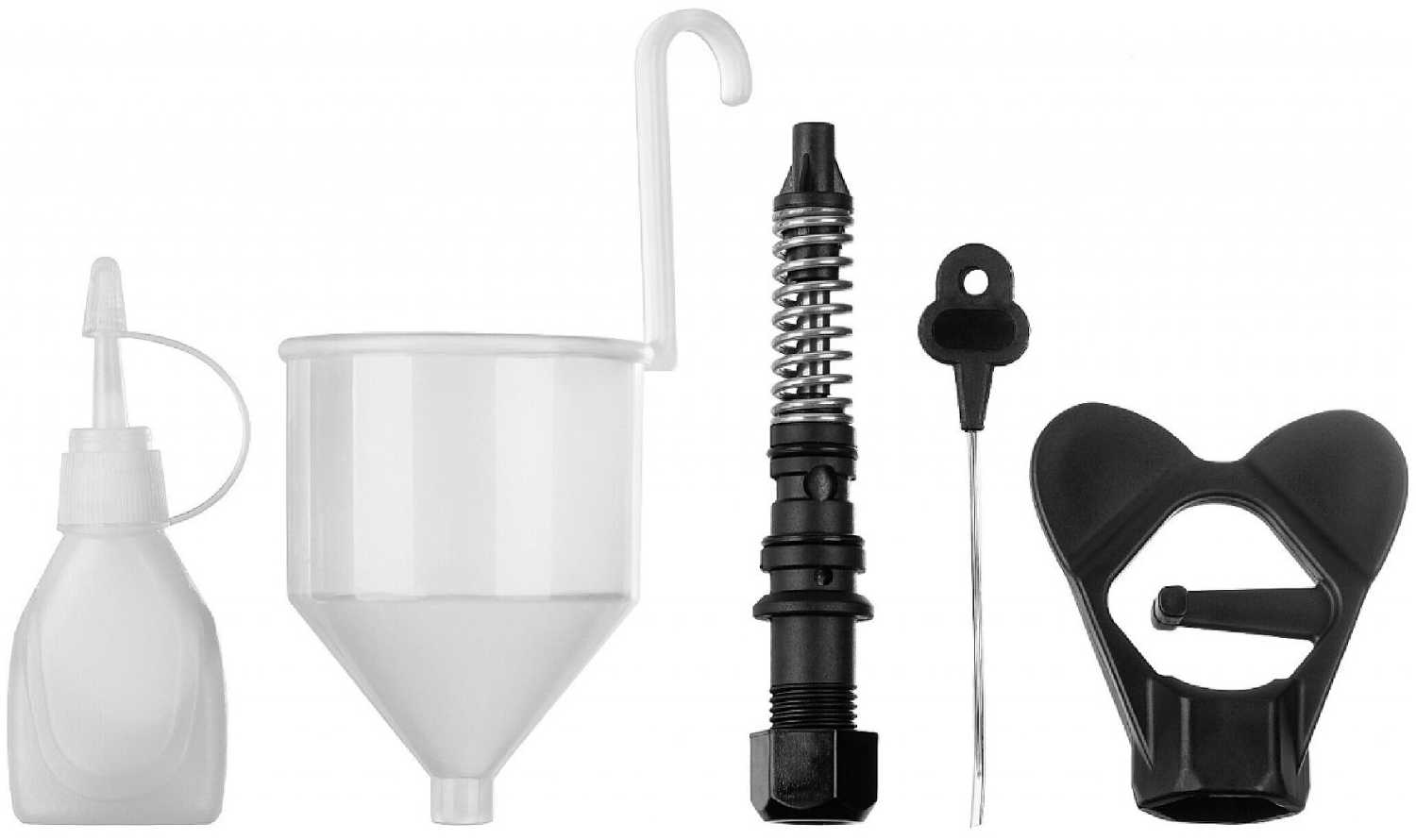 Комплектация : | игла чистящая, поршень запасной (в сборе с клапаном и соплом), стакан для измерения вязкости, ключ, чистящее средство, руководство по эксплуатации |