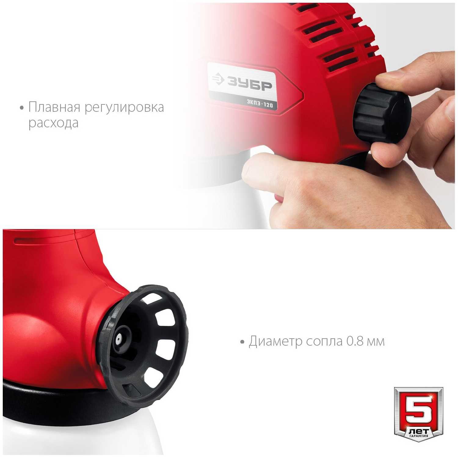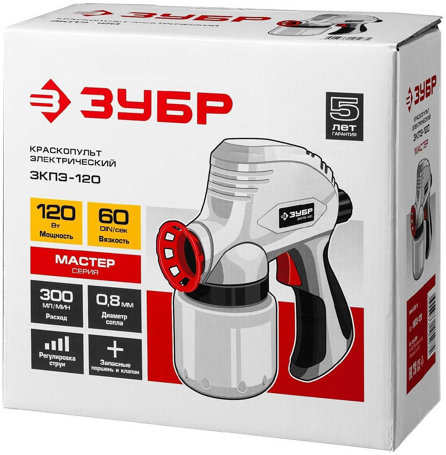 Дополнительная информация : | Электрический безвоздушный краскопульт ЗУБР 120 Вт ЗКПЭ-120 предназначен для нанесения красок лаков и иных растворимых материалов аналогичной вязкости на различные поверхности. Простота конструкции обеспечивает большой ресурс и легкость в обслуживании. Модель обладает удобной рукояткой с резиновыми накладками для надежного удержания без проскальзывания руки. Изделие не требует использования отдельного компрессора что значительно повышает его мобильность. Корпус изделия может быть выполнен в двух цветах: красном или сером.Преимущества ЗУБР ЗКПЭ-120 Не требует использования отдельного компрессора, Электромагнитный привод поршня обеспечивает повышенную надежность по сравнению с электродвигателем, Специальное антикоррозионное покрытие плунжера увеличивает срок службы краскопульта и допускает его промывку водой после работы с вододисперсионными красками, Простая и надежная конструкция подходит для широкого круга расходных материалов Регулируемый дозатор позволяет использовать материалы различной вязкости и приспосабливать изделие к разным манерам работы, Распыляющий механизм легко очистить после использования. |