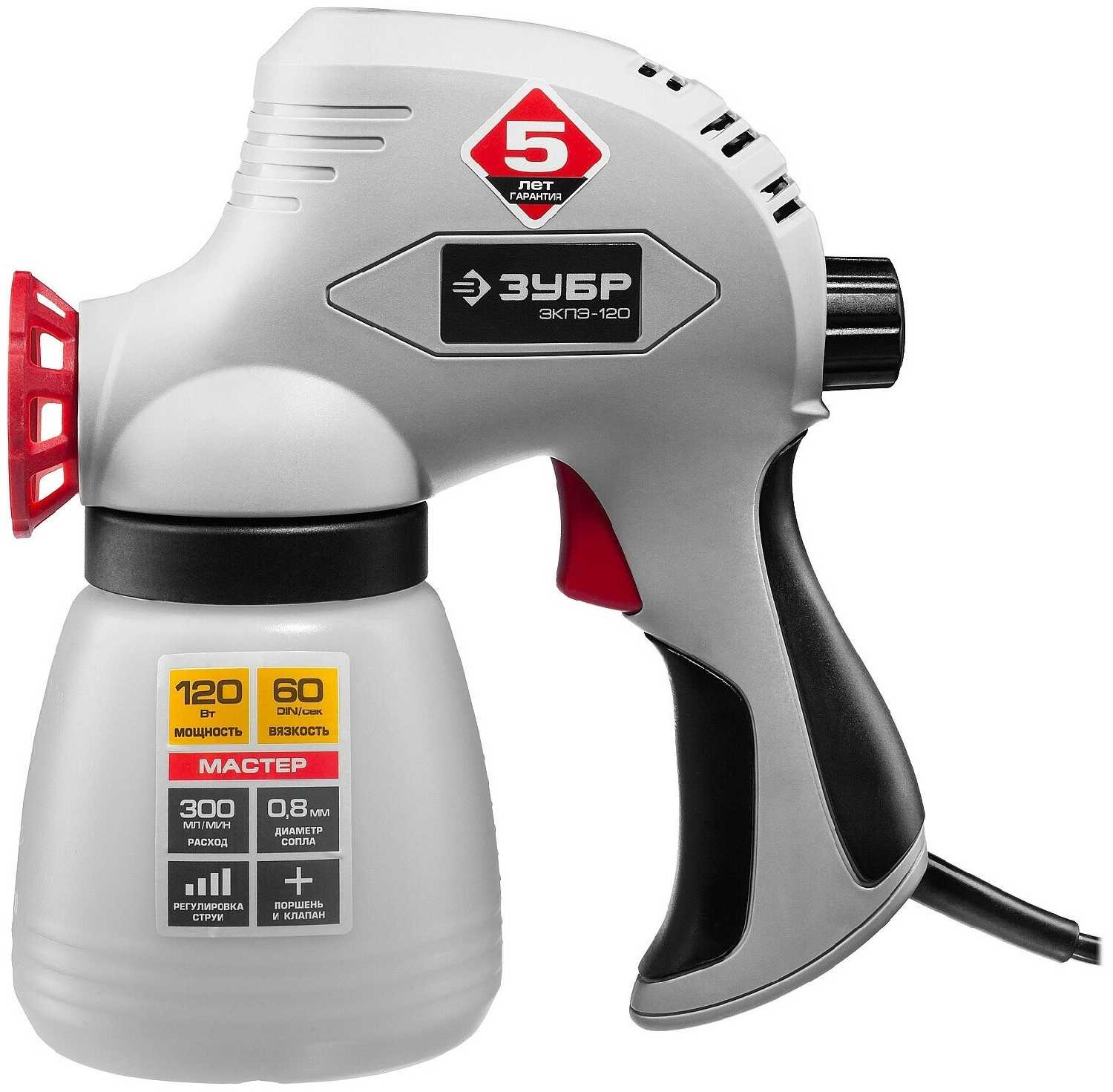 Хотел покрасить стены в гараже белой водоэмульсионкой, но у Зубр были другие планы. Канал постоянно забивается, регулировка распыления отвратительная, шум бесподобный, провод короткий, на 3 применение перестал работать. И вроде видно, что Зубр старается, качество сборки, над дизайном работают, но выше головы не прыгнешь. Опыта работы с краскораспылителями на тот момент не было, думал уж у них то функция простая, можно и подешевле взять. Ошибся.. Собственно, хотел сэкономить, за что и поплатился.