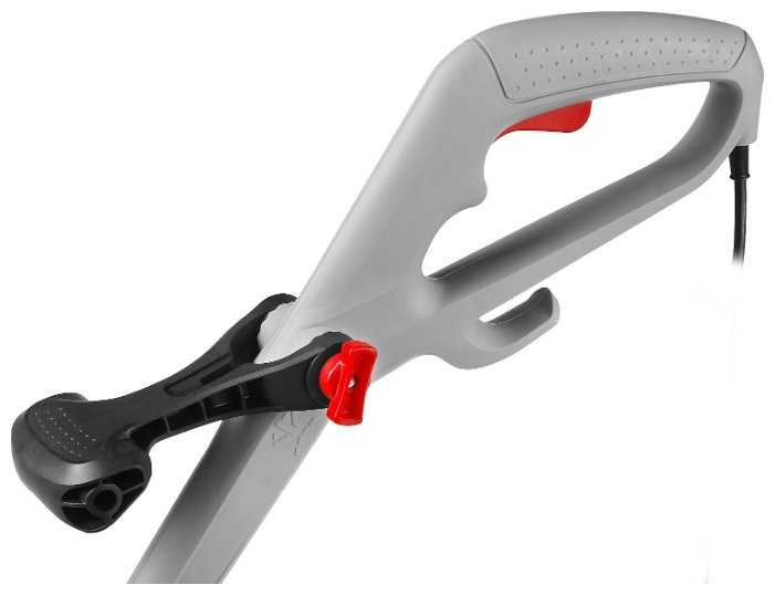 Телескопическая штанга - несомненный плюс, но вот только раскладывается она несущественно и при моем росте 177см приходится пригибаться, чтобы опустить триммер до уровня 2-4 см от земли. Гайка закрепления положения штанги пластиковая, что не добавляет к жесткости, однако в случае необходимости ее можно заменить металлическим хомутом.