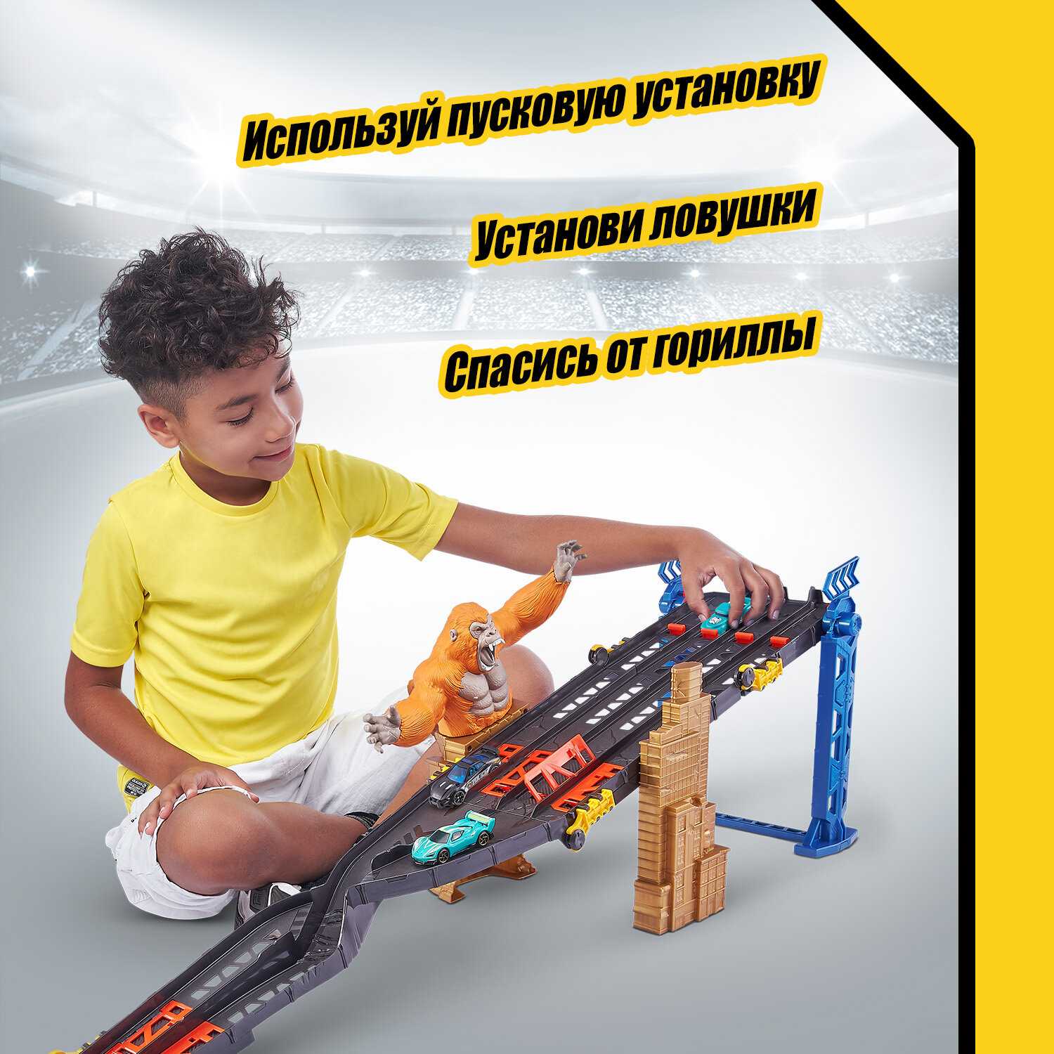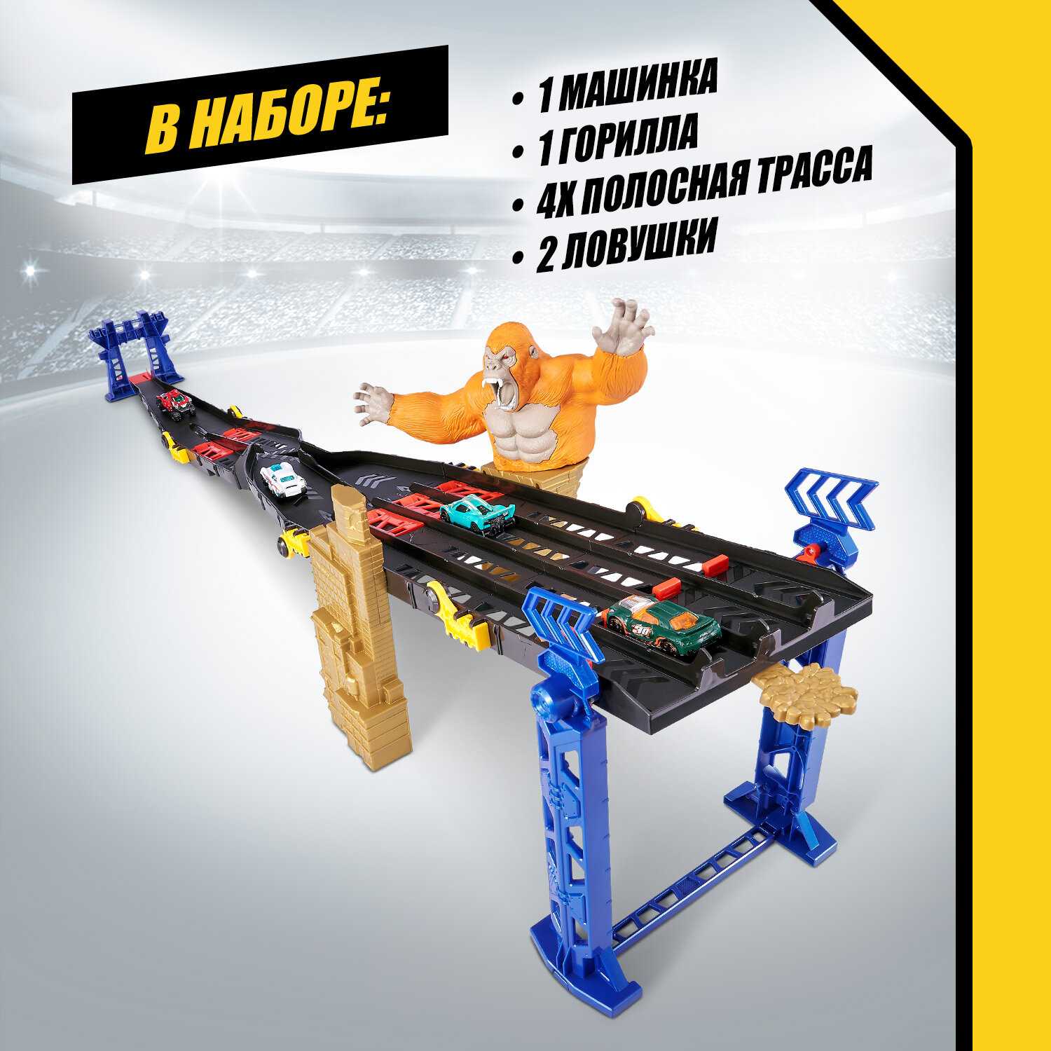 Рука гориллы предназначена для «сбивания» машинок, но у некоторых пользователей она не вращается из-за брака или неправильной сборки. Если механизм исправен, элемент добавляет азарта — машинки случайно вылетают с трассы, что нравится детям.