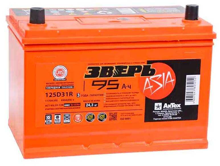 Отзывы о Автомобильный аккумулятор Зверь Asia 125D31R 306х173х225